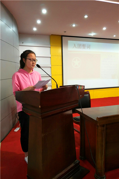 下午4时许,仪式在庄严的国歌声中拉开了序幕,主持人随即介绍了举行入团仪式的意义,紧接着宣布新团员名单、戴团徽、入团宣誓、新老团员代表发言、奏唱团歌等各项环节有序进行。新团员们面向鲜红的团旗,右手握拳,进行庄严而神圣的入团宣誓,一句句铿锵有力的誓词,道出了职教学子的责任和坚守,展现了新一代职教青年的风采。