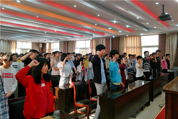 为迎接市职教中心2018年“职业教育活动周”活动,5月3日下午,对于职教中心每位即将加入共青团的新团员来说是一个终生难忘的日子。当天,一场声势浩大的入团仪式在图书馆五楼会议室举行,会议由校团委委员袁鹏主持。