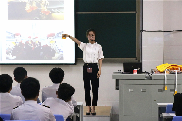 5月10日,晏婷教师在《空乘服务技能》——安全演示课上,认真讲解和演示了在飞机上如何让乘客知晓救生衣、氧气面罩、安全带等使用方法。然后通过让学生展示,激发了学生的热情和积极性。学生们通过“学中做,做中学”掌握了本节课的专业技能知识。