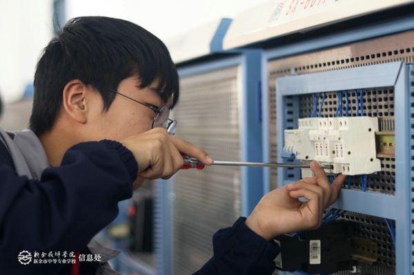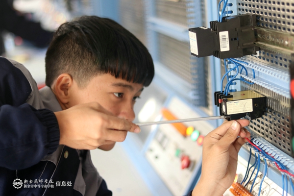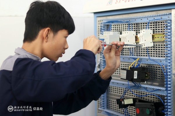 11月29日上午,新余技师学院电机控制线路安装技能比赛在实训楼三楼举行。共有18级的20位选手参赛。