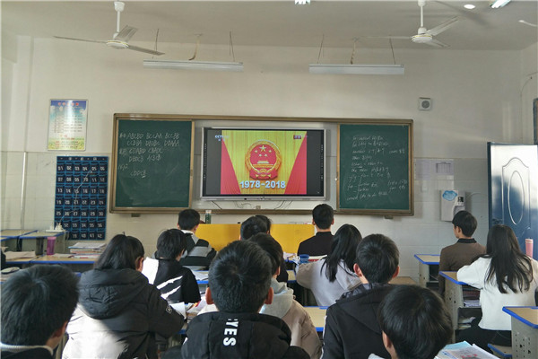 为回顾40周年的光辉历程,深刻总结改革开放的宝贵经验,表彰为改革开放作出杰出贡献的人员,12月18日上午,庆祝改革开放40周年大会在人民大会堂隆重举行。新余市中专组织师生收看大会直播盛况。