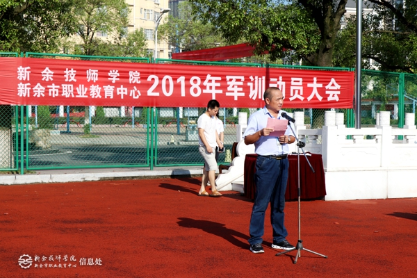 9月3日上午,新余市职业教育中心(新余技师学院)2018级新生军训动员大会在运动场隆重举行,新钢武装部军事科科长彭正东及校党政班子出席了大会,大会由副校长刘海林主持。