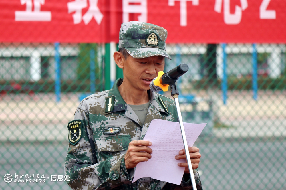 9月3日上午,新余市职业教育中心(新余技师学院)2019级新生军训动员大会在运动场隆重举行,新钢武装部军事科科长彭正东及副校长李峰同志参加了大会,大会由学生处主任刘国文主持。