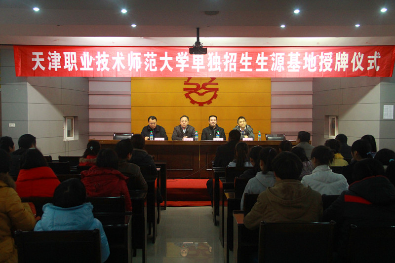 最后,伴着全场的鼓掌欢呼,校长刘焦华从天津职业技术师范大学处长吴让汉手中接过牌匾,为授牌仪式圆满划下句号。主持人当众宣布“天津职业技术师范大学单独招生生源基地揭牌仪式圆满落幕”,自此,我校正式成为天津职业技术师范大学单独招生生源基地。