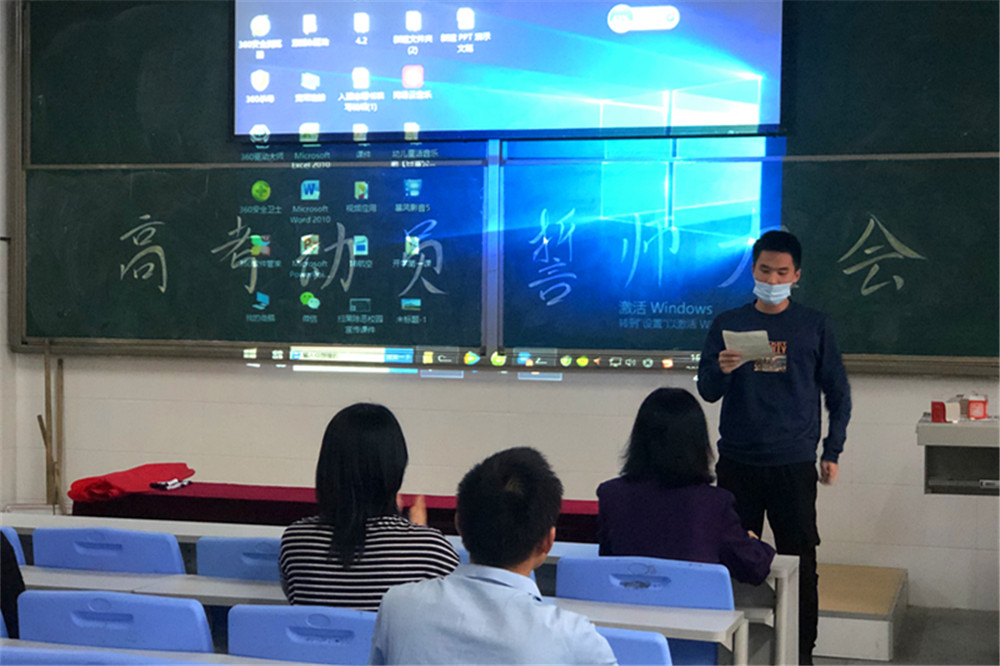 高考部付向辉老师首先讲话。2020年,由于新冠肺炎疫情的影响,注定是特殊的一年,注定是载入史册的一年;2020年的天津高考,注定是特殊的高考;希望大家努力克服疫情带来的不利影响,有更多的担当感、责任感和使命感,想更多的办法和更好的方法,争创我校最佳的高考成绩。