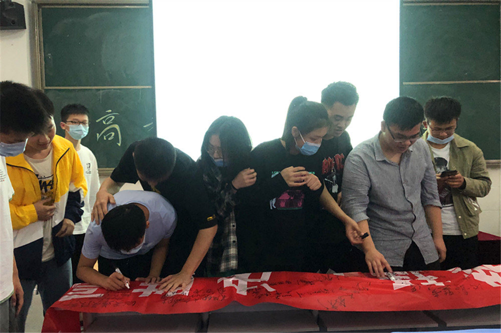 宣誓结束后,73位学子在红色条幅上踊跃签名,书写自己的高考美好心愿!