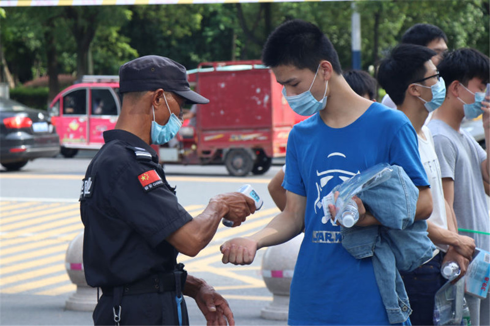 每位参与高考的相关人员(考生、监考老师、工作人员和服务人员)考前14天都要测量、记录好体温并签定考试安全承诺书,高考前一周(7月1日),每位高考相关人员还必须做好核酸检测并符合高考要求,考生需佩戴好合格的口罩经校门口的红外线探测仪检测,体温正常方可进入考点参加考试。另外学校每天指派专人定时做好校内各场所特别是高考考场的消杀消毒工作,安排了两名校医,配足配齐了防疫物资,为每位考生安全高考保驾护航。