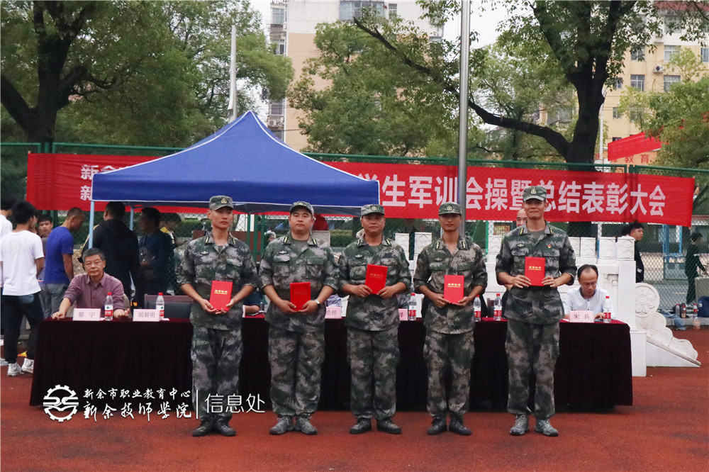 接着,副校长李峰公布优秀学员、优秀教官、优秀连队名单。校领导为优秀个人和连队颁奖。最后,校长胡浩然宣布2020年新余市职业教育中心军训会操比赛圆满落幕。