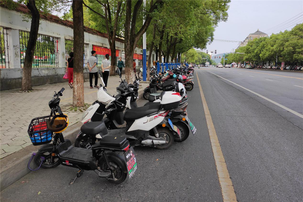 今年约800余名2020级秋季新生进入学校,其中大部分都是住在城区附近的走读生,很多学生都是骑电动车或自行车来学校。由于校园内的停车位置有限,为了图方便很多同学将自己的车辆停放在校园外马路上,给交通安全带来了较多隐患,也给其他行人通行造成不便。