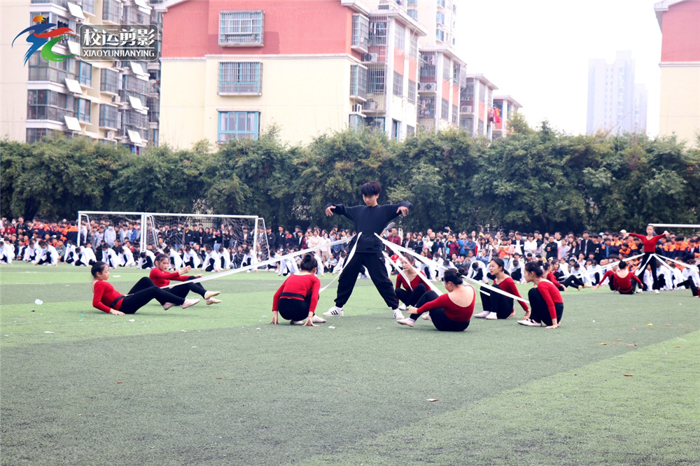上午八时,学校呈现一幅幅灵动的画面,彩旗招展,绿茵含笑,在激扬高昂的旋律声中,彩旗队、会徽队踏着整齐的步伐经过主席台接受检阅,队伍井然有序、脚步铿锵有力。77支班级方阵紧随其后,同学们个个精神抖擞、激情昂扬地走过主席台,一展班级风采;表演队同学们青春活力;裁判员们笑容可掬,形成一道道美丽的风景线。