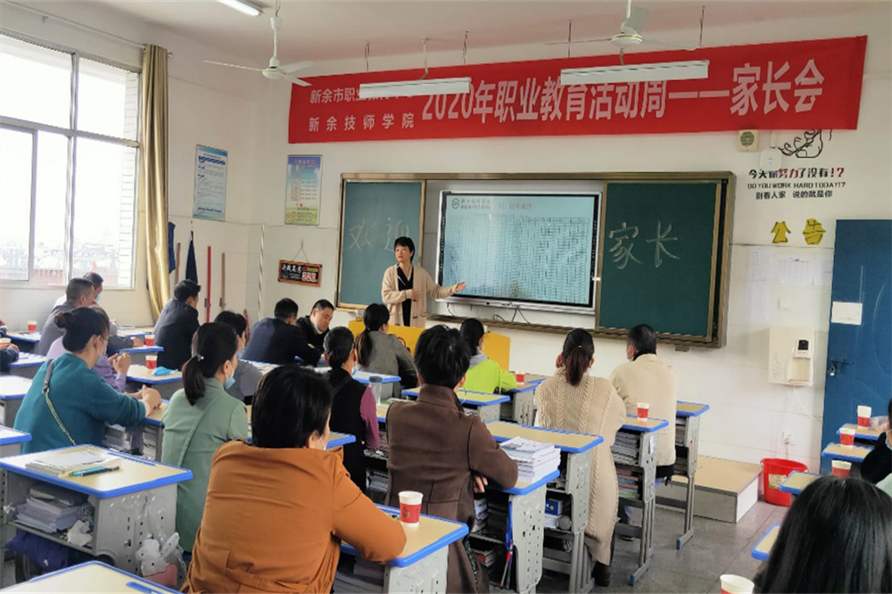 早上8点半家长在志愿者的引导下有序地排队、出示健康码、带口罩依次进入校园。会上班主任首先通过播放学校宣传片让家长们了解学校的基本情况,并就学生操行考核办法、学业考核办法、顶岗跟岗实习办法展开说明,让家长们知晓学校的各项规章制度。随后,向家长们汇报了本班学生在校的学习、生活等各方面情况,与家长进行了坦诚的交流和沟通。紧接着各任课老师针对自己所带科目做汇报发言。