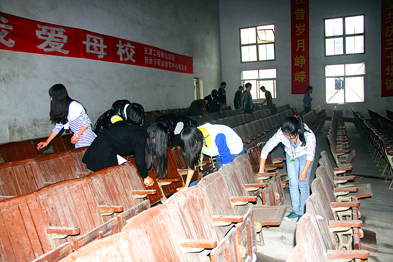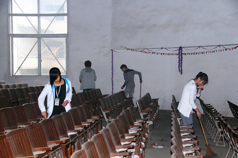 清扫过程中,团员们发扬不怕苦不怕累的精神,认真地清扫礼堂的地面、墙面、擦拭椅子上的灰尘。汗水虽然浸湿了他们的衣服,但志愿者们的脸上露出了满意的微笑。通过大家的共同努力,礼堂焕然一新,团员们用实际行动迎接“五·四”青年节的到来。