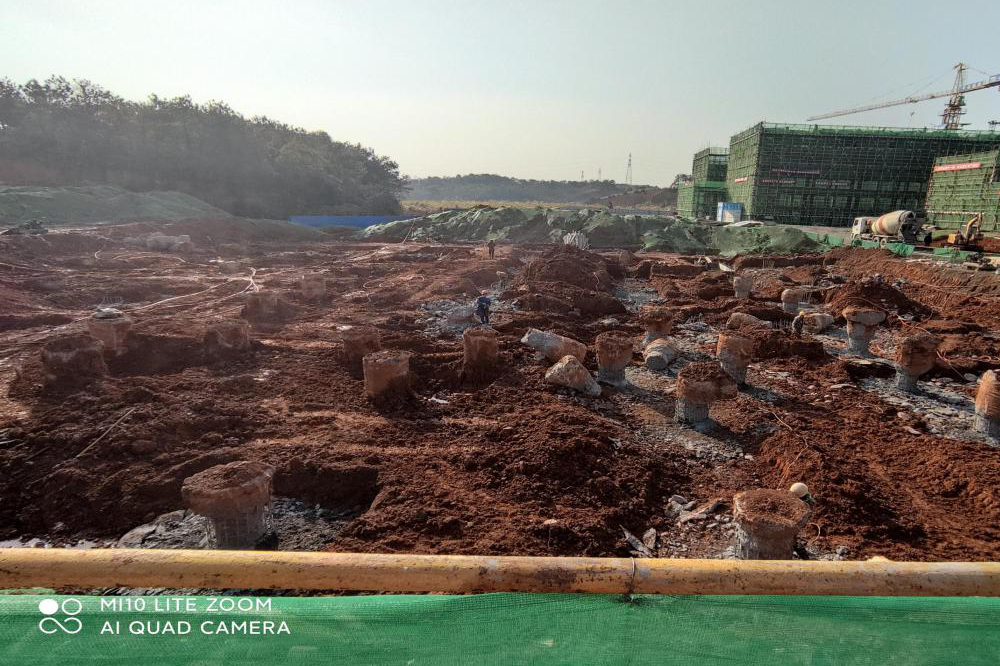 7号食堂螺旋桩破桩施工,下一步基础承台施工