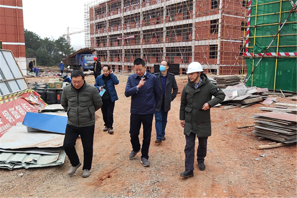 在项目建设现场张局长一行全面查看了项目建设进展情况,听取了胡朝明副校长对项目建设情况的汇报。张局长对项目进展表示肯定,并要求施工方保证工程质量安全的同时做好疫情防疫工作。