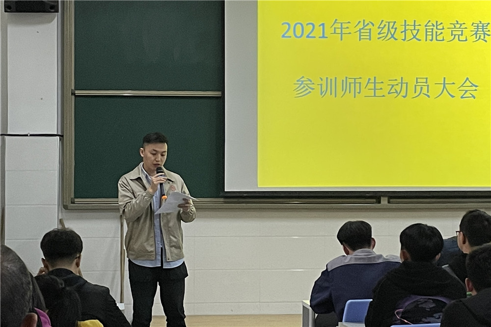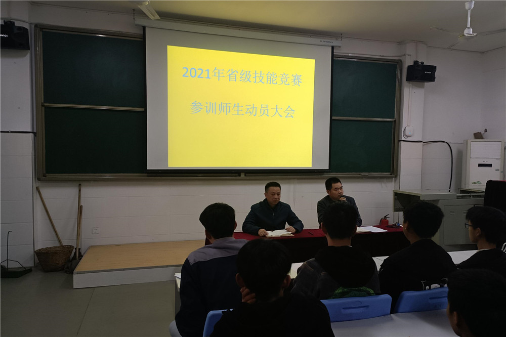为更好的备战2021年省职业院校技能大赛,4月7日下午,市职教中心在教学楼B栋201阶梯教室召开了2021年技能大赛参训师生动员大会。分管校领导邹建峰、实训中心主任帅国勇以及各赛项的指导教师和学生共70余人参加了会议。