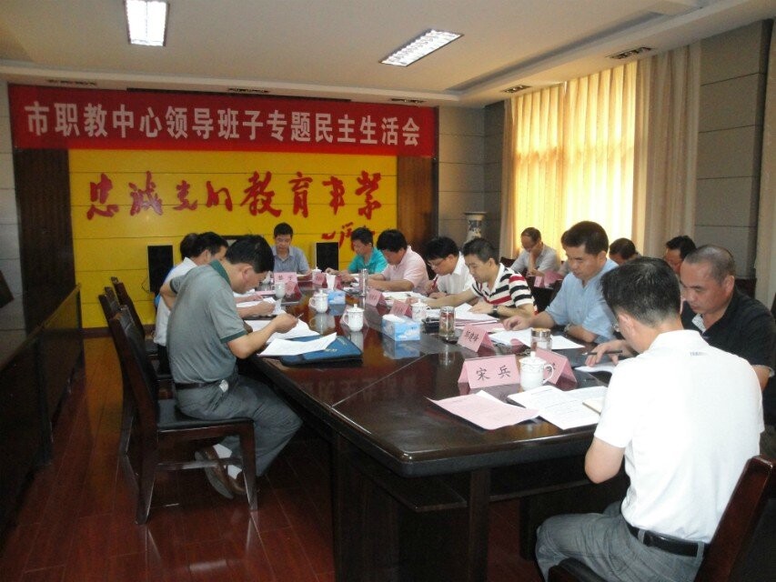 7月11日,市职教中心在学校图书馆三楼会议室召开党的群众路线教育实践活动领导班子专题民主生活会。市教育局副局长、市教育局党的群众路线教育实践活动第七督导组组长廖春荣,督导组成员赖春明、廖兴中莅临指导,学校全体班子成员、普通党员代表参加会议。