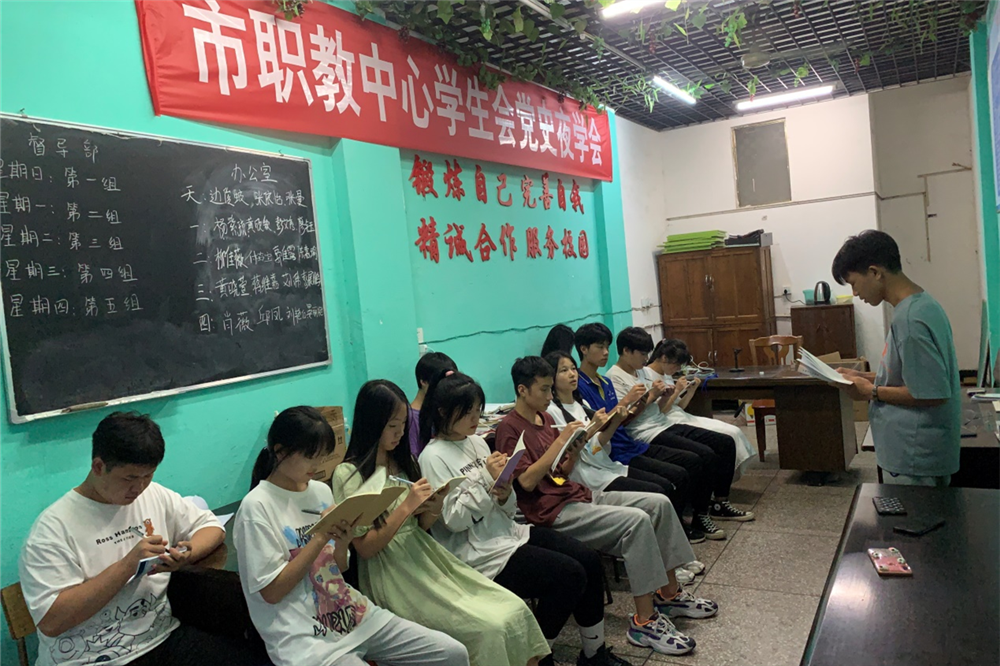 6月23日、24日晚,新余市职业教育中心学生会办公室灯火通明,学校学生会主席刘群带领学生会主席团成员开展“党史夜学”活动。