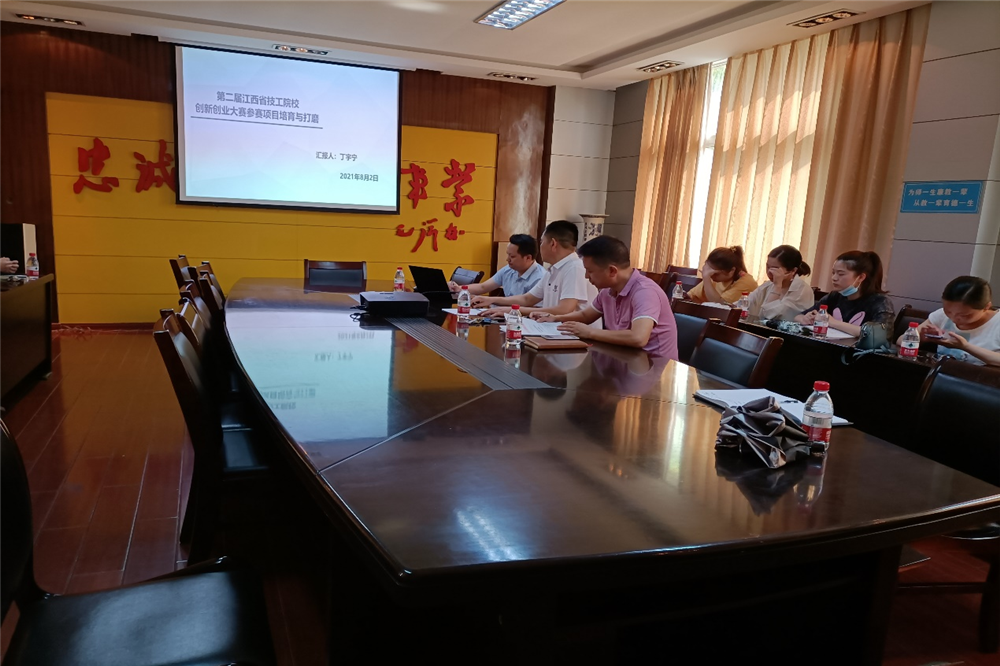 2021年8月2日下午三点,首届江西省技工院校学生创业创新大赛工作部署会在市职教中心图书馆三楼会议室召开,会议由分管副校长邹建峰主持,实训中心主任帅国勇、教务处负责人闵文群、各专业教研室主任及相关教师参加了此次会议,会后由江西省冶金职业技术学院的丁宇宁教授对此次比赛的相关内容进行了简单的赛前培训。