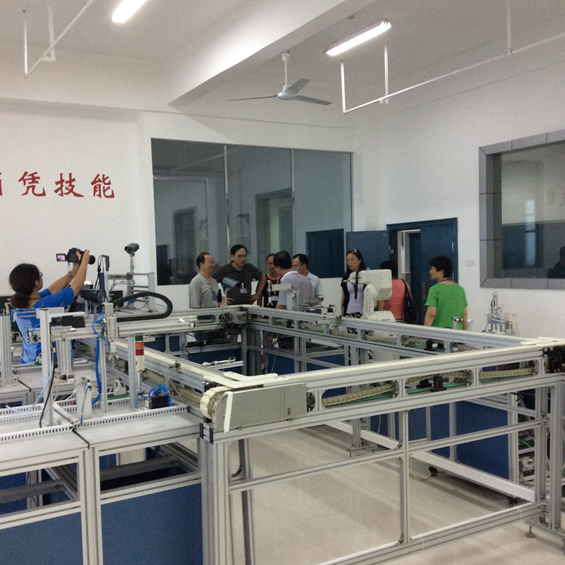 在江西技师学院,我们与该院的院长助理蔡启茂等13名教师进行了座谈交流,观摩了该院一体化教学场所及相关设备,并按专业将教师进行了分组对接、交流学习。