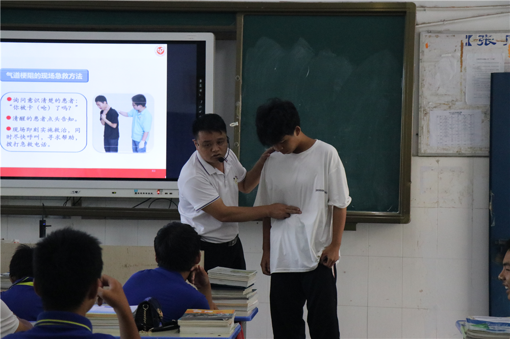 培训会上,新余市红十字会李琴老师以提问的形式,结合身边实际,用通俗易懂的语言向师生讲解了防溺水、心肺复苏等知识。还邀请学生上台进行实际操作,在模拟人身上做心肺复苏,进一步巩固了所学知识,掌握了现场急救的基本知识。