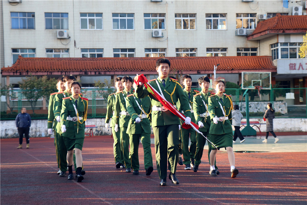 首先刘国文主任对第三届国旗队这一年以来的表现给予了肯定,换届仪式上新老国旗队队长进行了交接,第四届国旗队队长廖志平接过第三届国旗队队长廖炅灵手中的国旗,第三届国旗队队员把校国旗队的责任与使命传承给了学弟学妹们,随后胡浩然校长为第三届国旗队优秀旗手颁发荣誉证书。