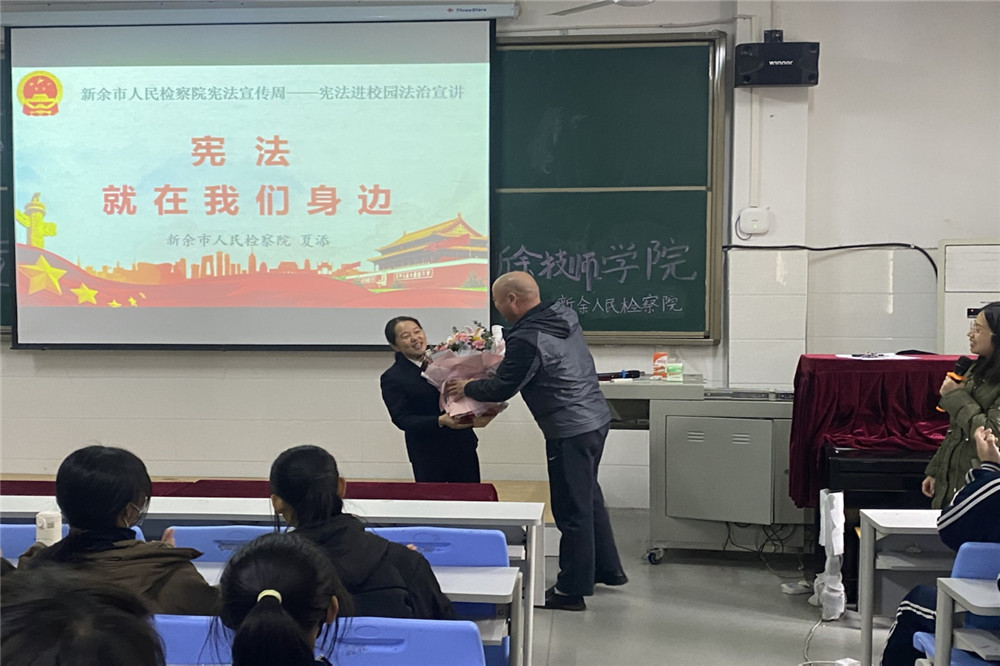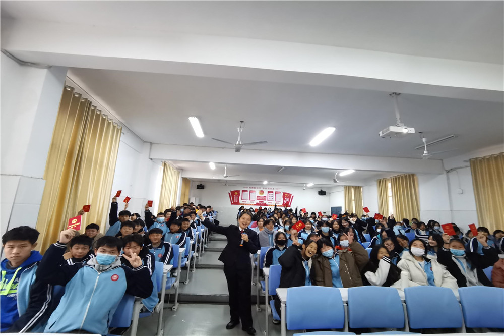 为进一步增强同学们的法律意识及自我保护意识,帮助学生了解相关知识,促进青年学生健康、快乐成长,2021年12月20日下午,夏添检察官走进新余市职业教育中心,为同学们进行以“宪法进校园”为主题的专题宣讲。宣讲会由校团委书记林露老师主持,副校长李峰参加了宣讲会。
