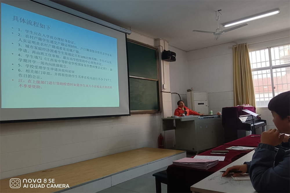 东风今助鸿鹄志,来日梁材报故园。助学、筑梦、铸人是国家资助政策的意义所在,那么国家资助政策包括哪些资助项目呢?这些资助项目的申报条件和申请程序是什么呢?为进一步加大学生资助政策宣传力度,加强对受资助学生的诚信、感恩和励志教育。为了让同学们更加了解这些资助项目的申报条件和申请程序,新余市职业教育中心学生资助中心于3月2日举办本校学生资助干事培训,进行国家资助政策宣传,引导学生深入学习国家学生资助政策,激励家庭困难的学生奋发学习、积极实践、用实际行动回报社会。