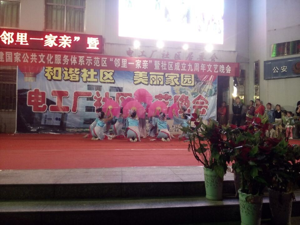 当天晚上7:20,我校志愿者们为社区群众献上了精彩纷呈的文艺节目。双胞胎郭金花、郭银花的《风吹麦浪》博得了老人们的热烈掌声。之后王柳、张晨等十二个人带来的舞蹈《秀色》也让在场观众唏嘘不已,惊叹不止。这些节目充分展现了我校学生多姿多彩的文化艺术。此次演出志愿者们也做了充分准备,利用课余时间进行排练,受到了在场观众的一致好评。