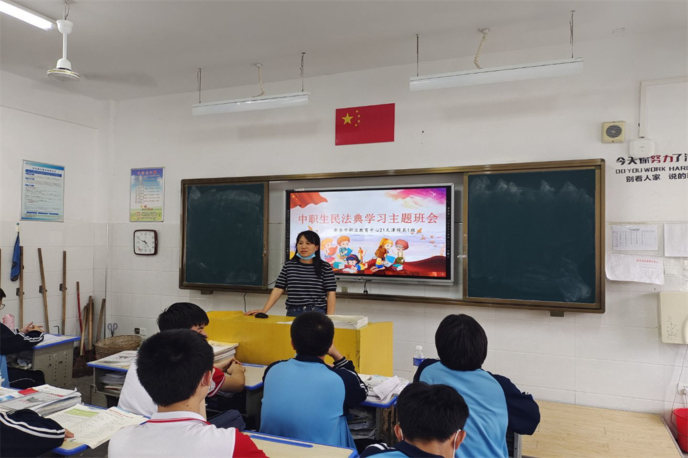 为认真贯彻落实中央全面依法治国工作会议精神,深入学习宣传贯彻习近平法治思想特别是习近平总书记关于民法典的重要指示批示精神,在学生处的组织下,新余市职业教育中心各班于5月31日下午开展了“美好生活·民法典相伴”主题班会活动。