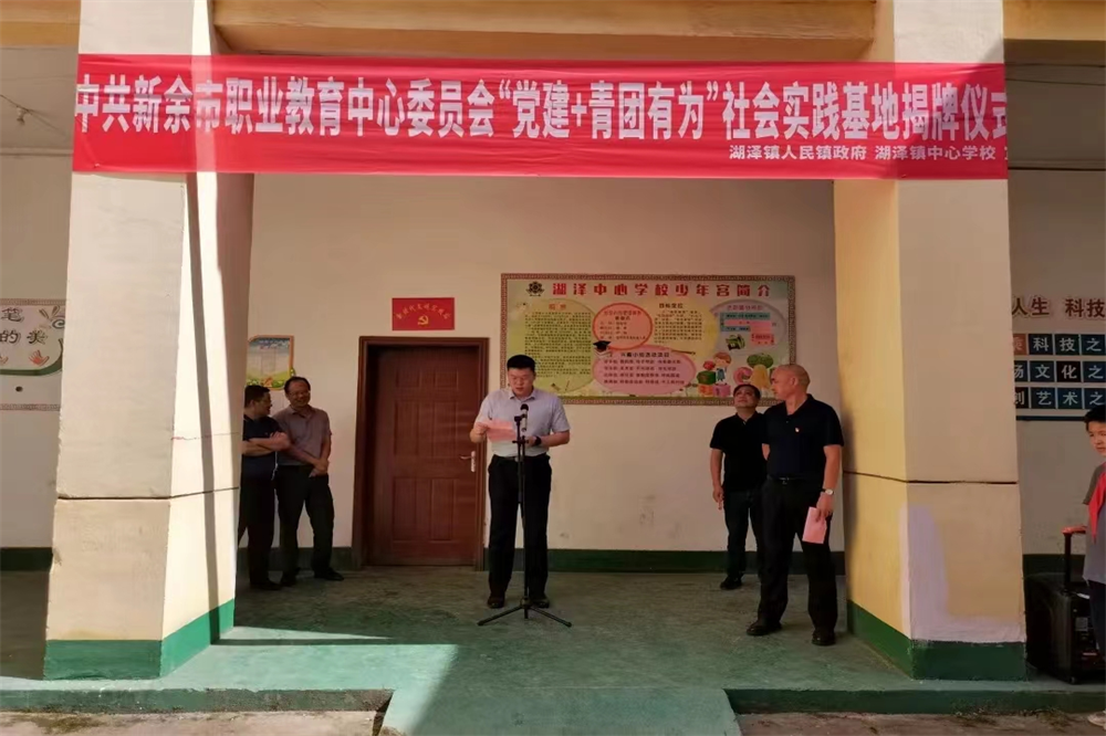 仪式上,湖泽镇中心学校校长赵金生致欢迎辞,新余市职业教育中心党委副书记黎宇,湖泽镇党委副书记、镇长傅强分别对社会实践基地揭牌仪式进行了讲话。