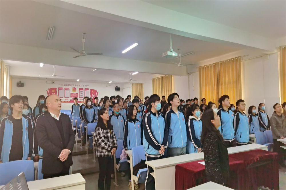 誓师大会在庄严激昂的国歌声中拉开了帷幕。