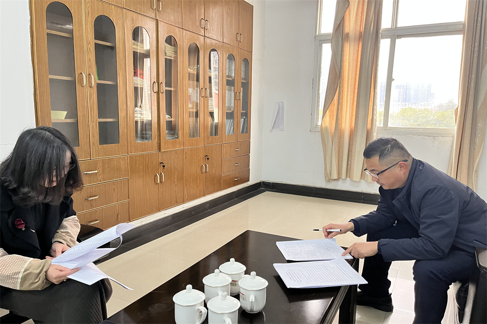 党政办刘洪主任采取一对一的方式,同处室全体成员就学习四届六次教代会报告心得体会进行了交流,并就党政办2023年工作计划进行了商议。
