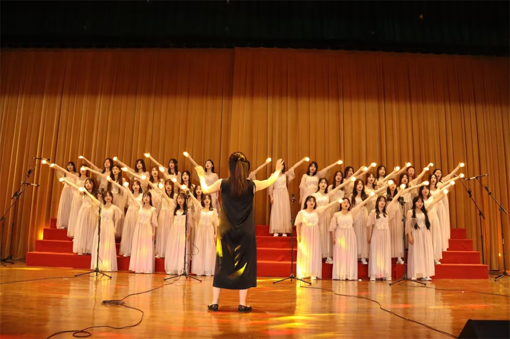 比赛在22幼教4班的深情演唱中拉开帷幕,他们演唱《亲爱的旅人》表达了人生就像一场旅行,经历的事情可能会被遗忘,但学到的东西会永远留在心间。由21幼教2班带来的《一想到你呀》掀起了比赛的高潮,动感的节奏、整齐划一的动作与声音完美地展现了现在无限快乐,幸福生活的场景,更展示了职教学子积极向上、团结奋进的精神风貌。“江那边云好低,江这边云好高,太阳在云里躲猫猫……”22保育1班的同学们在徐靖妮老师的激情指挥下,完美演绎了《下白雨》,描绘出老人和孩子的角色对比,更展现了现代生活和往昔情怀的对话,赢得了场下观众的阵阵掌声。经过激烈的角逐和评委的公正评判,最终22保育1班斩获特等奖。