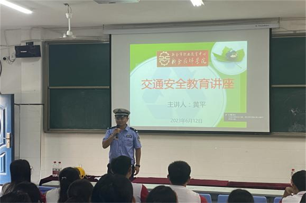 6月12日上午,市交警支队城北大队走进新余市职业教育中心,为学生带来一堂丰富多彩的文明交通安全教育讲座,我校近200名师生代表在B201阶梯教室积极参加了本次交通教育讲座活动。