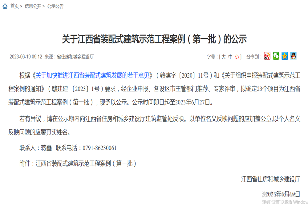 6月19日,市职教中心新校区(二期)项目被省住建厅评为江西省装配式建筑示范工程案例(第一批)(新余唯一)。
