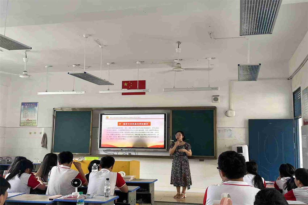 在班会上,各班级紧密围绕“铸牢中华民族共同体意识”这一主线展开学习。首先学习了铸牢中华民族共同体意识的提出过程、基本内涵、意义及关键;随后,同学们从身边的民族团结进步故事,结合自身生活体会展开交流讨论,表达了热爱祖国、感恩社会、关心集体的浓厚感情;最后班主任结合最近的社会热点,提出了“在新时代下,我们应如何为祖国繁荣、民族团结献一份力”的问题。