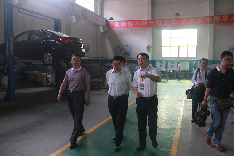 汤建人一行在刘焦华校长及其余校领导班子的陪同下,察看有关教学设施,了解学校教学状况,对我校现代职业教育所取得的成就给予了充分肯定。