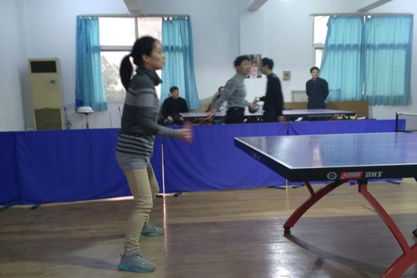 近日,我校乒羽协会开展教师乒乓球比赛,比赛分男女两组,经过激烈较量,傅拾生和谭可老师分别获得男女单打冠军。
