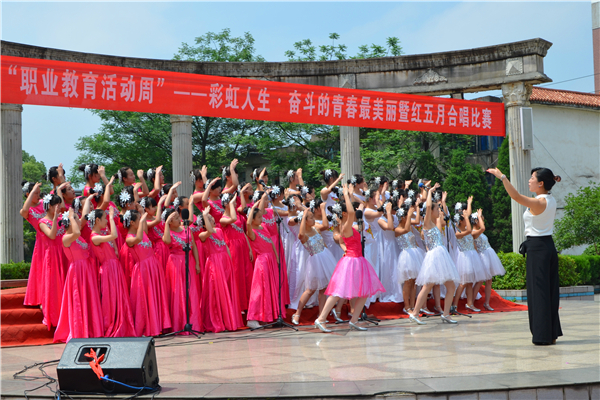 为丰富市职教中心“职业教育活动周”内容,弘扬爱国主义精神,营造良好的校园环境,展现职教学子积极向上的精神风貌,增强各班级的凝聚力,5月11日,由市职教中心团委组织的“彩虹人生·奋斗的青春最美丽”主题合唱比赛在学校灯光球场激情开唱。来自全校各级43个班级的1600余名学生一展歌喉,唱响了职教学子的青春风采。学校原党委副书记陈江闽,副校长刘海林、胡朝明亲临现场指导。比赛由李梦蕾老师主持。