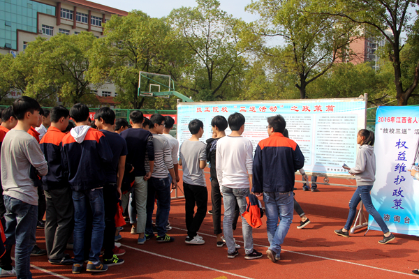 随后,为了帮助学生深入了解技工院校相关政策,省人社厅在校运动场组织开展现场政策解读。省人社厅罗文副调研员以及学院院长刘焦华、书记胡浩然、副书记黎宇等相关领导进行了简要的开场。来自市人社局就业科陈丘、劳动关系科周小忠、社保科曾辉、仲裁科任远、职建科谢海勇等专家型领导为学生答疑解惑并发放宣传资料,近500名学生领取了由省人社厅专门编制的技工院校政策、就业创业政策、职业技能鉴定政策、劳动关系政策、社会保险政策、权益维护政策等六大类政策宣传折页。同时,学校依据宣传内容和学生情况制作了相关宣传展板,供学生详细了解。