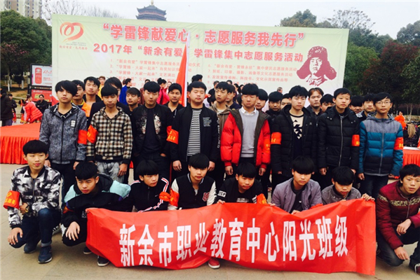 3月3日上午,市职教中心阳光班级40名学员在团委老师的带领下来到抱石公园参加新余市2017年“新余有爱”学雷锋集中志愿服务活动。