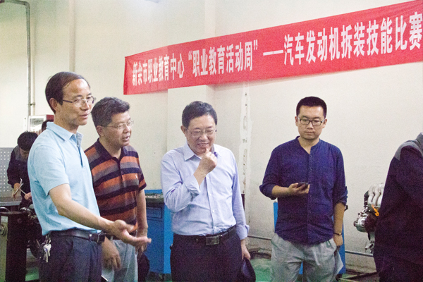 5月10日,市教育局党委委员、社管处处长何卫兵,市职成科科长易健儿莅临市职教中心督导2017年“职业教育活动周”开展情况。