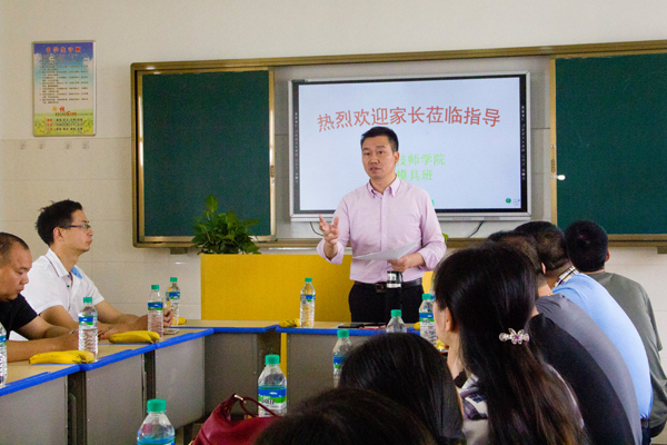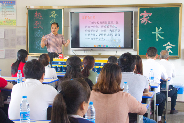 在学校周密的安排下,各重点班以班级为单位召开家长会。在此次交流会上,家长会主要有以下几个步骤:一是学校基本情况;二是班级基本情况;三是优秀学生代表讲话;四是家长代表讲话;五是相互交流学生在校及在家的情况;六是就如何加强家庭教育工作进行指导交流;七是向家长开放教学实训场所,展示学生技能实训作品。