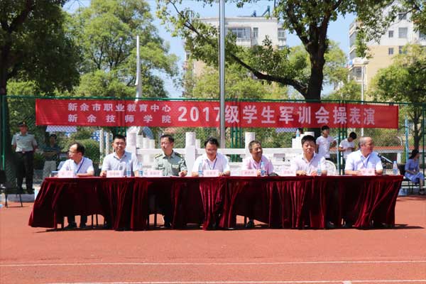 9月15日上午10时,新余市职业教育中心(新余技师学院)2017级新生军训会操表演在校运动场隆重举行。73346部队办公室主任鲁霜清、校党政班子成员出席了大会,大会由副校长李峰主持。