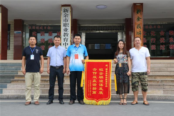 近日,江西盛泰光学有限公司人事科刘经理、周经理为市职教中心送来一面锦旗:“校企合作谋发展合作双赢谱新篇”。邹建峰副校长代表学校接受了锦旗,并对江西盛泰光学有限公司赠旗表示感谢。