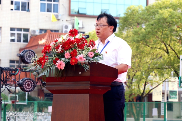 最后,校长刘焦华致辞。他回顾了学校去年取得的丰硕成果,并对全体师生提出了殷切期望,希望老师们能以高尚的人格感染学生,以丰富的学识引导学生,以博大的胸怀爱护学生,静心教书、潜心育人,努力成为学生欢迎、家长满意、同行敬佩的优秀教师;希望同学们在新学年里争做“学习的先锋”,成为“守纪的模范”,当好“文明的使者”,在求知的大好年华,不负时代、不负韶华,谱写出属于自己的无悔青春。