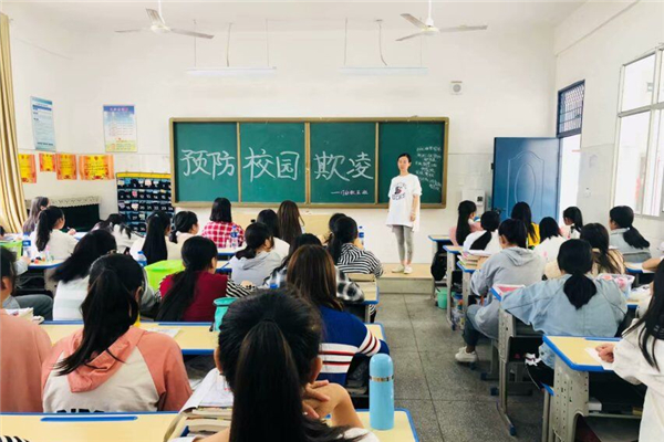 在主题班会课上,各班班主任通过PPT课件、文字图片展示等直观向学生们介绍了校园欺凌的危害及如何预防校园欺凌的内容。同时列举了校园暴力典型案例,强化同学们对预防校园欺凌的认识。
