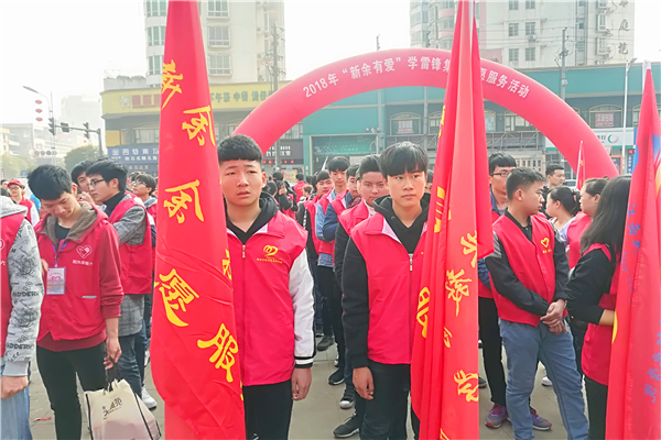 3月4日上午,市职教中心40名团员志愿者在团委袁鹏老师的带领下,来到抱石公园参加新余市2018年“新余有爱”学雷锋集中志愿服务活动。