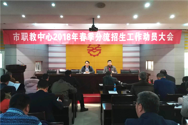 首先,分管副校长邹建峰在会上做了动员讲话,他详细分析了2018年我校面临的招生形势。邹校长指出,我校在今年的春季分流工作占中绝对优势,校园面貌焕然一新,学校品牌已基本打造,只要全员一齐参与,同心协力,今年的春季分流工作一定能稳创佳绩。